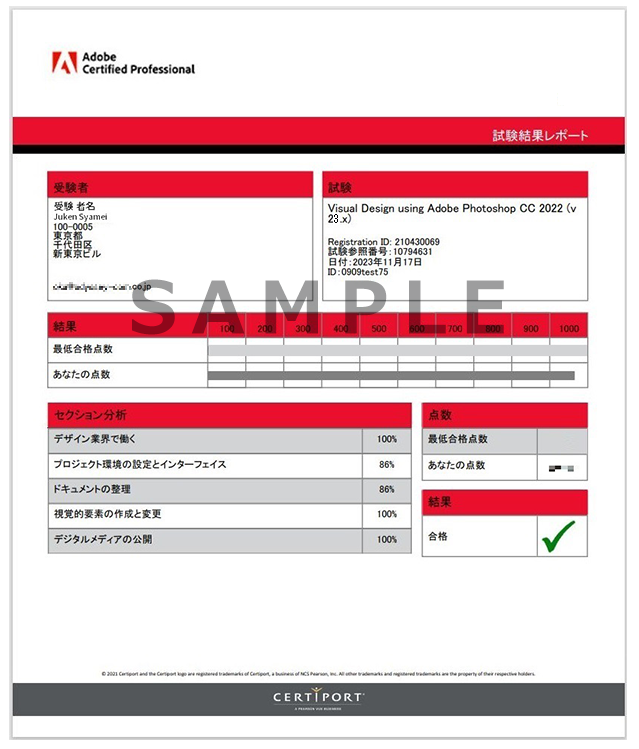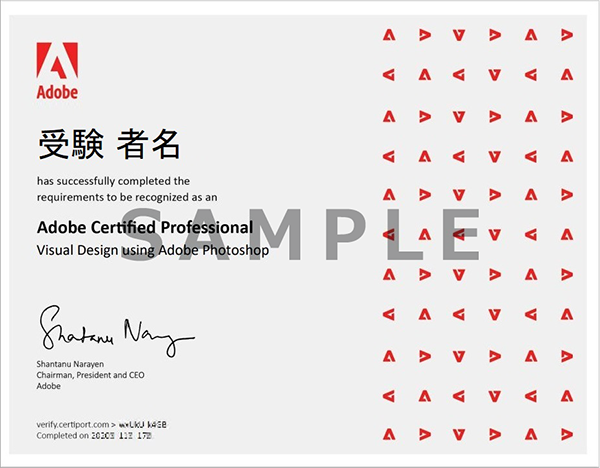 認定要件の2科目に合格すると、「Adobe Certified Professional in Visual Design」「Adobe Certified Professional in Video Design」「Adobe Certified Professional in Marketing Design」として認定されます。